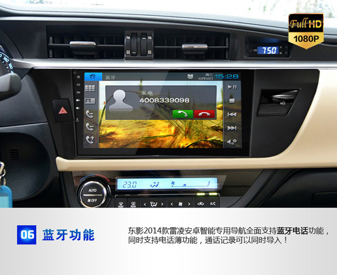 蓝牙功能    东影丰田2014款雷凌安卓智能专用导航仪全面支持蓝牙电话功能,同时支持电话薄功能,通话记录可以同时导入!