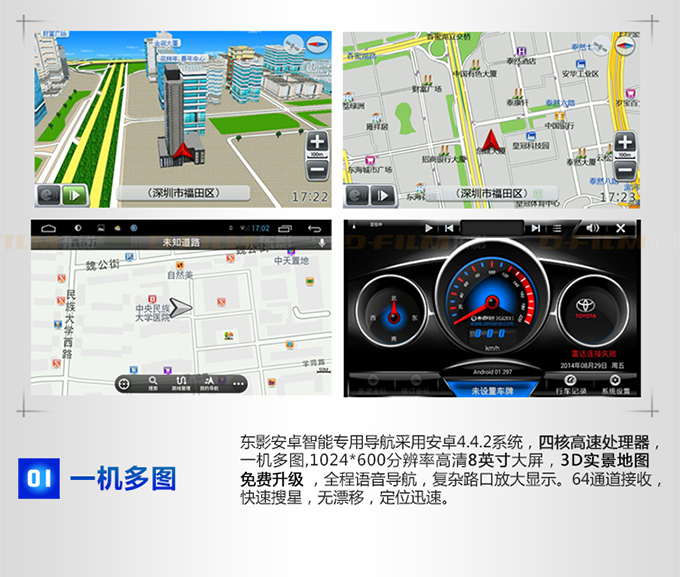 1.东影导航支持一键导航功能,方便驾驶中开启导航功能。 2.支持导航听音乐、收音、视频,可一键式来回切换。 3.主机带一键关屏功能,夜间安全行车更安全,标配车载蓝牙电话,提高驾驶注意力。 4.音乐、收音、DVD、导航带记忆播放,拔钥匙切断电源后再次启动均可记忆播放。 5.内置45W*4大功率扬声器输出,数码高低音处理技术,多种音效模式可选。 6.支持SD最大扩充32G,U盘最大支持16G。 7.导航均为专车专用,与原车电源线和收音机天线直接对插,不用破坏原车路线。 8.支持原车方向盘控制按键,音量加减、上下选择一个也不会少,主机菜单中自带方向盘学习选择,设置非常简单。 9.开机LOGO风格,可以自定义DIY。 10.支持高清数字电视、胎压监测、行车记录仪、GPS定位仪等相 关扩展功能(选配)。 |