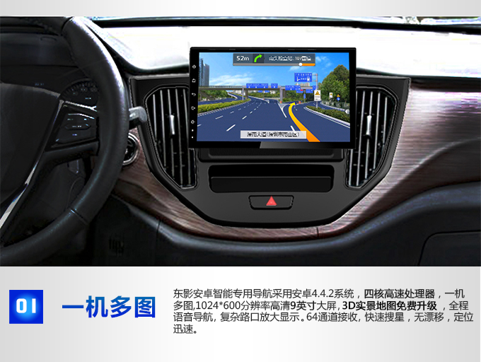 1.东影导航支持一键导航功能,方便驾驶中开启导航功能。 2.支持导航听音乐、收音、视频,可一键式来回切换。 3.主机带一键关屏功能,夜间安全行车更安全,标配车载蓝牙电话,提高驾驶注意力。 4.音乐、收音、DVD、导航带记忆播放,拔钥匙切断电源后再次启动均可记忆播放。 5.内置45W*4大功率扬声器输出,数码高低音处理技术,多种音效模式可选。 6.支持SD最大扩充32G,U盘最大支持高速处理器。 7.导航均为专车专用,与原车电源线和收音机天线直接对插,不用破坏原车路线。 8.支持原车方向盘控制按键,音量加减、上下选择一个也不会少,主机菜单中自带方向盘学习选择,设置非常简单。 9.开机LOGO风格,可以自定义DIY。 10.支持高清数字电视、胎压监测、行车记录仪、GPS定位仪等相 关扩展功能(选配)。 |